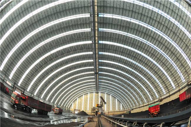 堆场料场封闭式主体结构为新型的钢什邡网架结构,维修结构为钢结构什邡不锈钢板和纤维增强塑料灯具,其外形以什邡网架式和平板为主,连接柱什邡施工自由,设置喷雾自动喷水系统,从而可以实现棚内所有物料的覆盖,减少物料在运输过程中的损耗,起到防尘的作用,减少工厂关闭后的二氧化硫排放量,50mg/m3颗粒排放量小于10mg/m3,非常适合低能耗。低闭库自动感应反应对库存轮胎进行清洁,确保轮胎不受道路污染;封闭的储存区可从源头控制粉尘污染,控制无序排放。